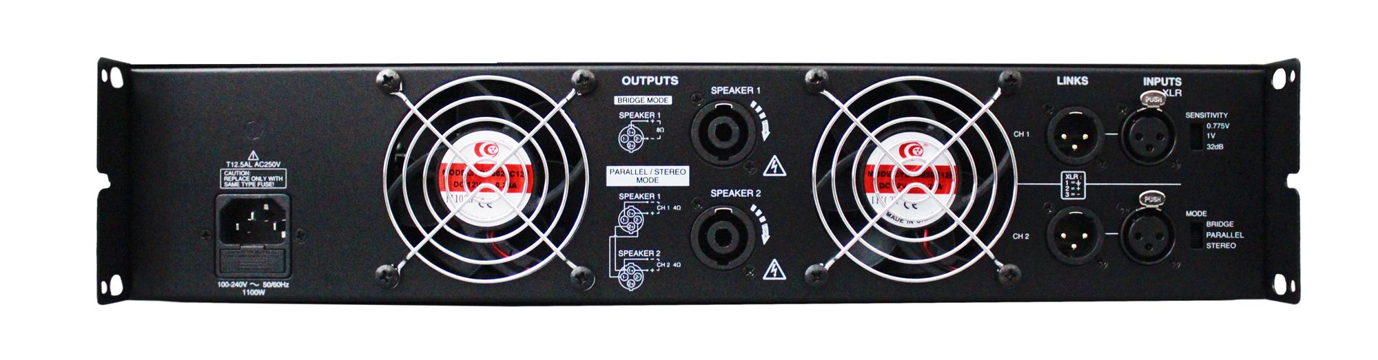 Non-CE Model Power Source 100 - 240 V AC, 50/60 Hz Amplification System Class D Power Consumption 1100 W *1 Input CH 1-2: 20kΩ (balanced) / 10kΩ (unbalanced), 0.775/1.0V/32dB*2, XLR-F connector Output LINK CH 1-2: XLR-M connector Speaker 1-2: 2 channels: 700 W × 2 (8 Ω)*3, 1250 W x 2 (4 Ω)*4 1 channel (BRIDGE): 2500 W × 1 (8 Ω)*4 NL4 SPEAKON connector Frequency Response 20 Hz - 20 kHz (±3 dB) Total Harmonic Distortion ≤ 0.15 % S/N Ratio ≥ 100 dB LED Indicator Protect (Red) / Clip (Red) / -5dB (Green) / -10dB (Green) / -20dB (Green) / Signal (Green) / Power (Green) Cooling Air flow from front to rear Operating Temperature 0 ℃ to +35 ℃ (32 ゜F to 95 ゜F) Operating Humidity 80 %RH or less (no condensation) Finish Case: Plated steel sheet, black Dimensions 483 (W) × 89 (H) × 305 (D) mm Weight 6.1 kg Accessory Power cable …1 CE Model Power Source 100 - 240 V AC, 50/60 Hz Amplification System Class D Power Consumption 1100 W *1 Input CH 1-2: 20kΩ (balanced) / 10kΩ (unbalanced), 0.775/1.0V/32dB*2, XLR-F connector Output LINK CH 1-2: XLR-M connector Speaker 1-2: 2 channels: 700 W × 2 (8 Ω)*3, 1250 W x 2 (4 Ω)*4 1 channel (BRIDGE): 2500 W × 1 (8 Ω)*4 NL4 SPEAKON connector Frequency Response 20 Hz - 20 kHz (±3 dB) Total Harmonic Distortion ≤ 0.15 % S/N Ratio ≥ 100 dB LED Indicator Protect (Red) / Clip (Red) / -5dB (Green) / -10dB (Green) / -20dB (Green) / Signal (Green) / Power (Green) Cooling Air flow from front to rear Operating Temperature 0 ℃ to +35 ℃ (32 ゜F to 95 ゜F) Operating Humidity 80 %RH or less (no condensation) Finish Case: Plated steel sheet, black Dimensions 483 (W) × 89 (H) × 305 (D) mm Weight 6.4 kg Accessory Power cable …1