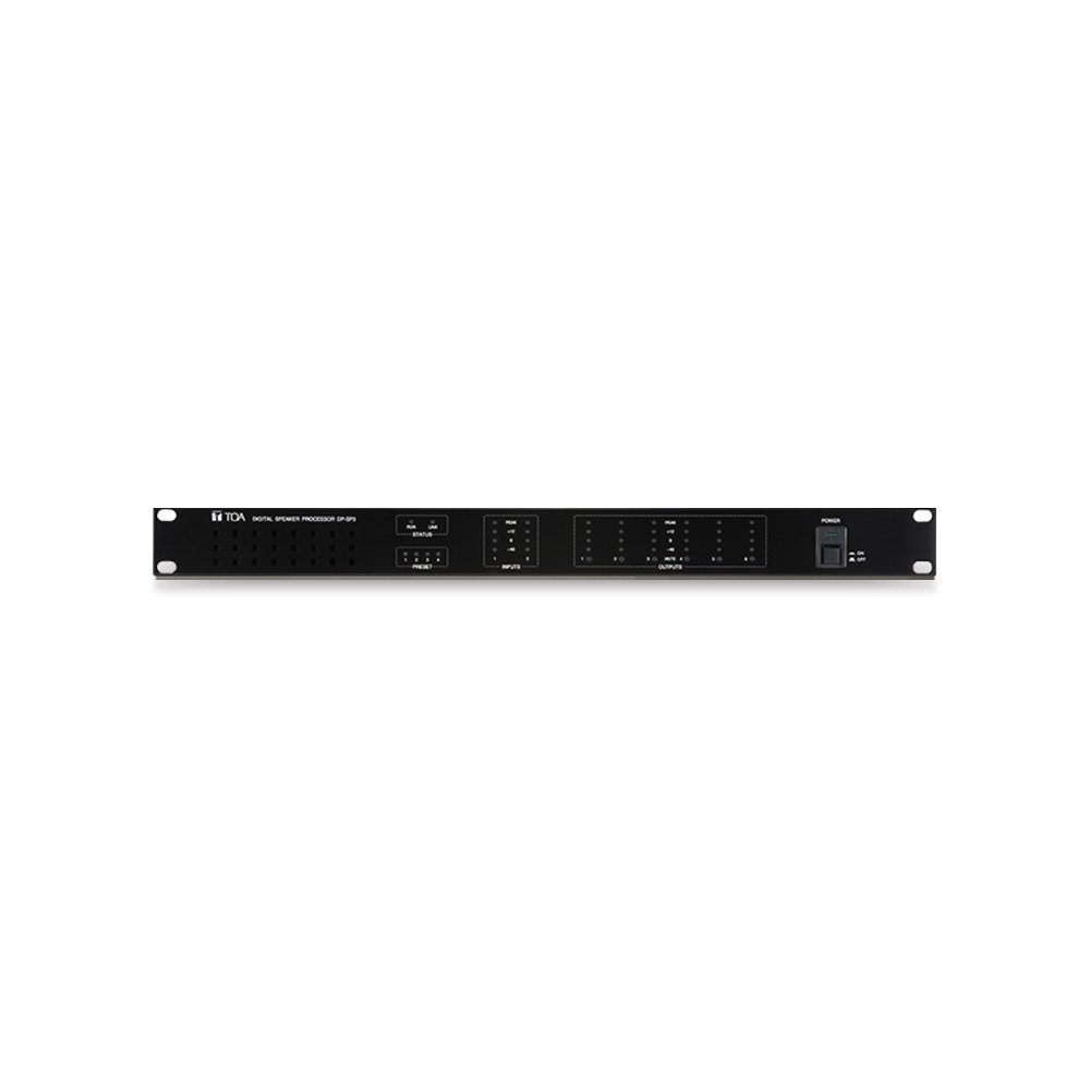 The DP-SP3 is a 1U rack mountable Digital speaker processor having 2 inputs and 6 outputs. It features digital signal processing functions such as Equalizer, Crossover, Matrix, Compressor, and Delay. Other functions include input PAD, analog output attenuator, output MUTE, EQ characteristic library for TOA speakers, and contact input terminals. When connected to a LAN, settings and operations of the DP-SP3 can be performed on a PC with the supplied DP-SP3 PC Software installed. It can be mounted in an EIA component rack (1U size).